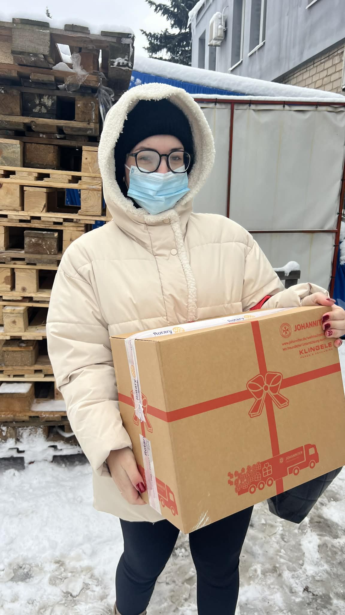 Wir bekamen mehrere Spenden, um in der Ukraine Nikolaus- und Weihnachtsunterstützung leisten zu können. Dieses Geld überwiesen wir an zwei unserer Partner und organisierten selbst eine Geschenkaktion für Kinder von Soldaten. Außerdem kümmerten wir uns in diesem Jahr wieder um die Zolldeklarationen, damit die Johanniter-Weihnachtstrucker Lebensmittelpakete in die Ukraine liefern konnten. Start war hier Dnipro, wo unser Kyjiwer Büroleiter, Joerg Drescher, bei der Lieferung anwesend war und tatkräftig mithalf: